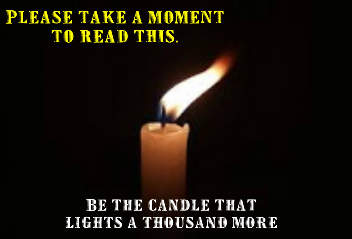 Something to ponder. Bless all of you who get involved. The littlest thing can make a huge impact. Remember, “Thousands of candles can be lighted from a single candle, and the life of the candle will not be shortened.” Be a candle in this dark world.